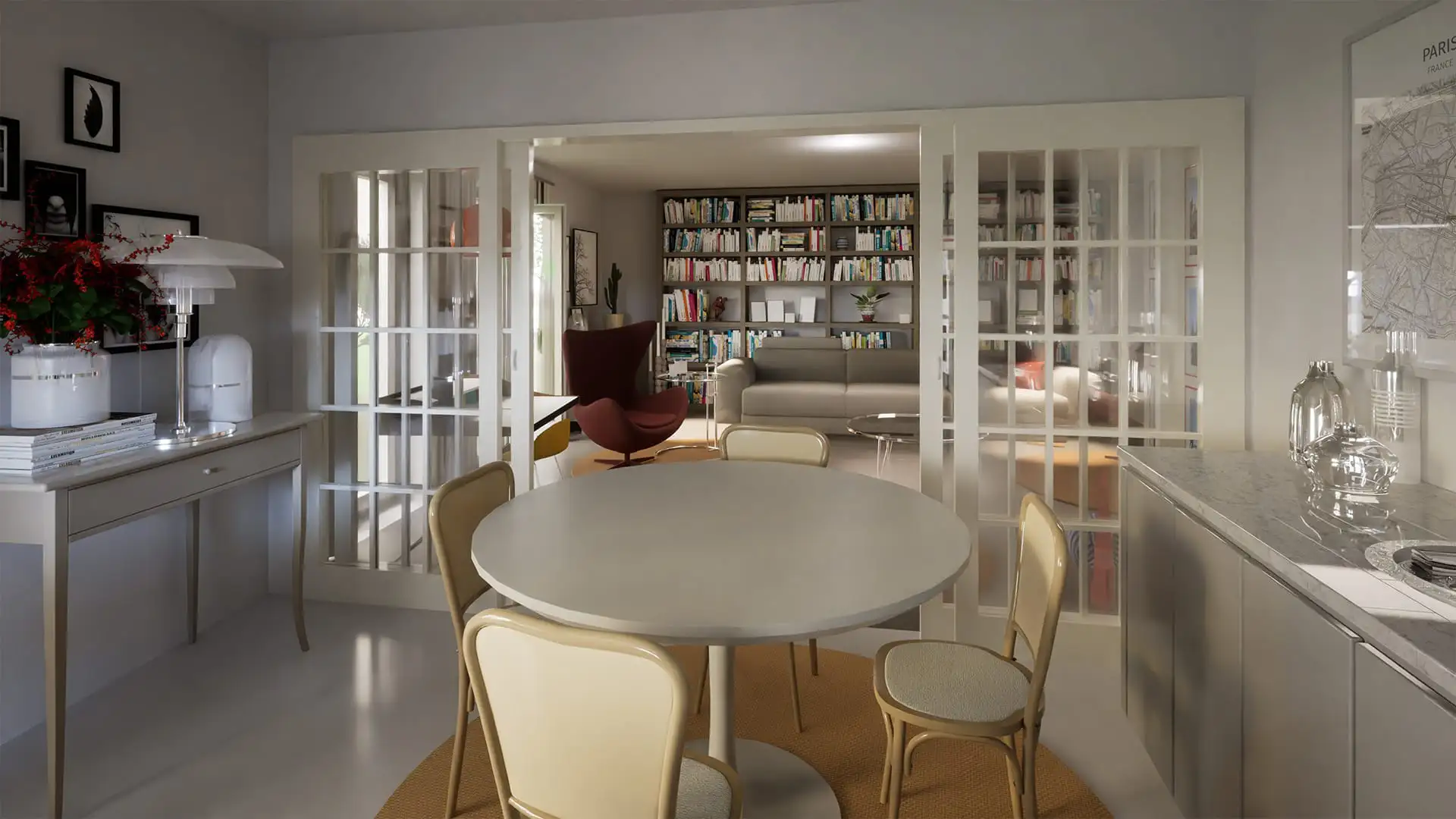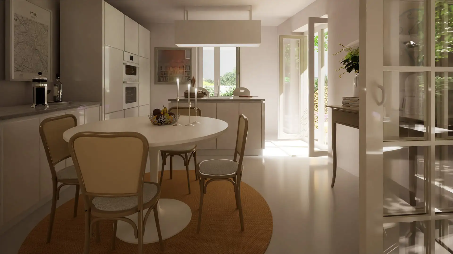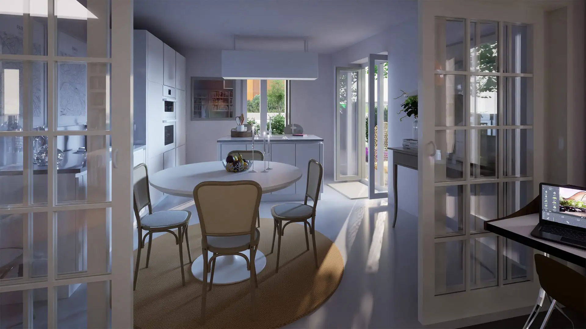 Alle Fenster- und Fenstertüren erhalten Griffe in Aluminium. Alle Fenster- und Fenstertürbeschläge sind in EV1 – Oberfläche ausgeführt.