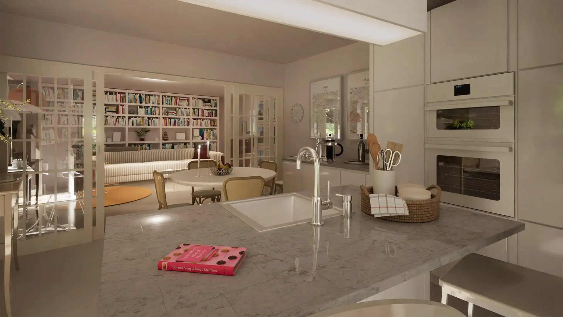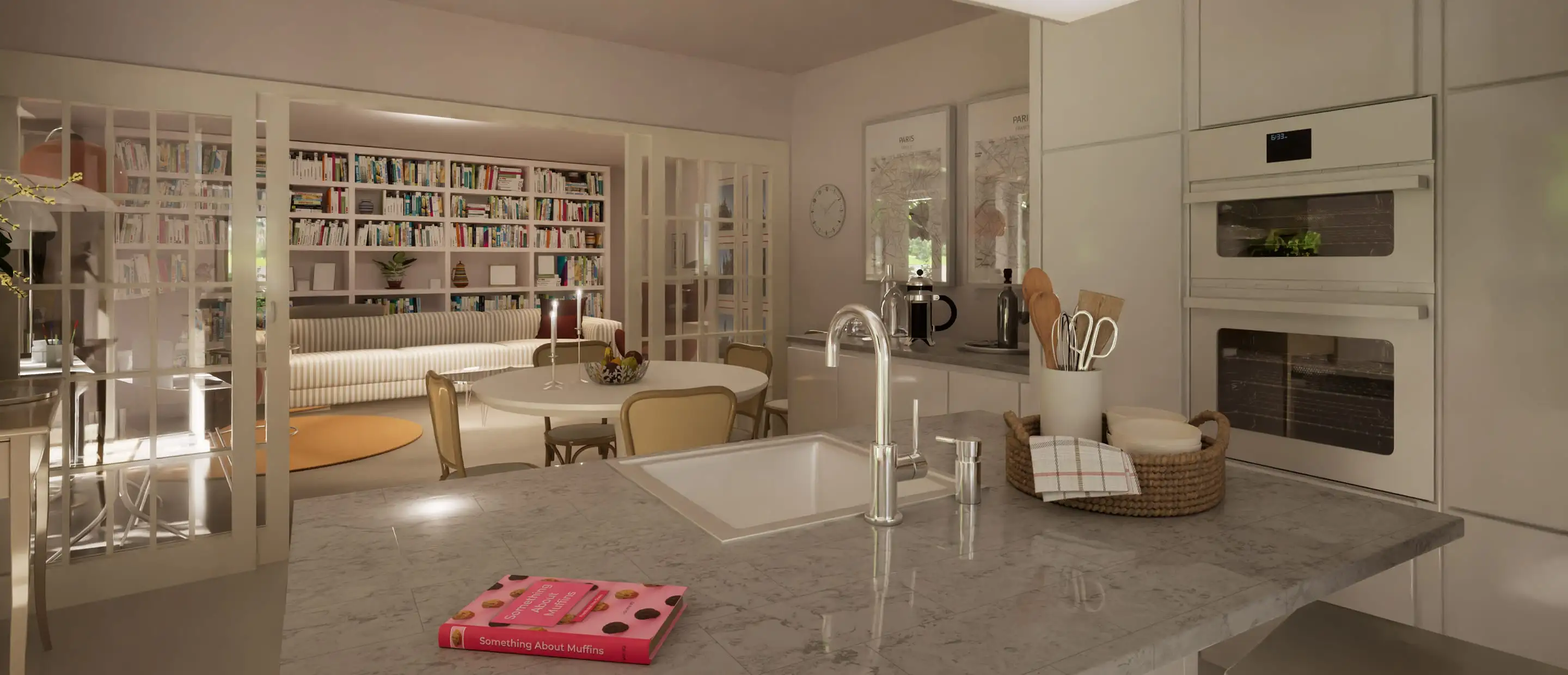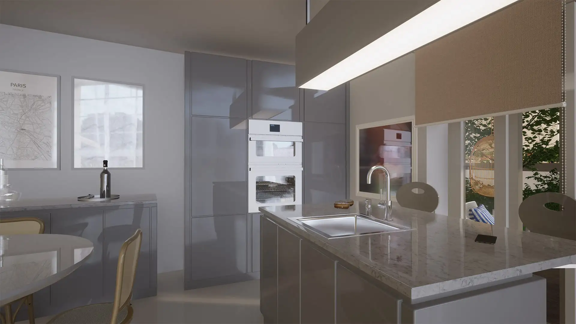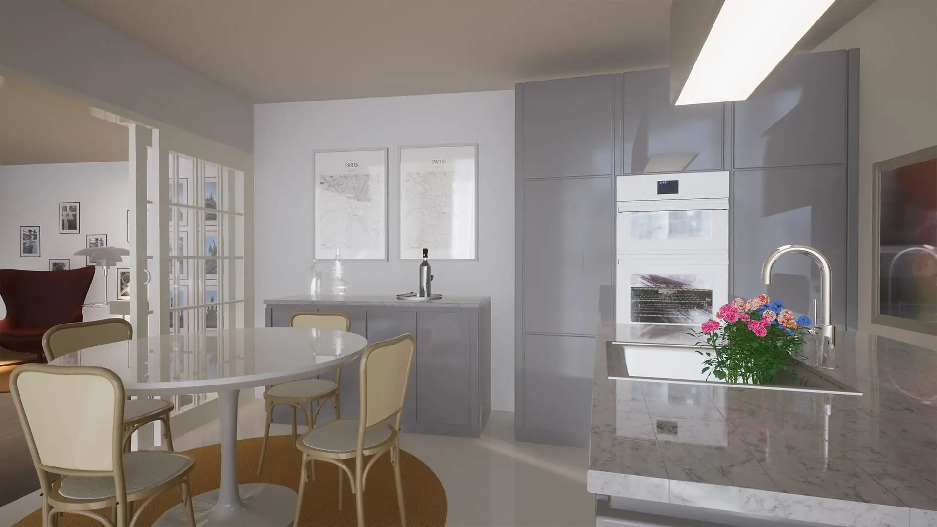 In den Küchen werden ein Warmwasser- und Kaltwasseranschluss mit Eckventilen sowie ein Abwasseranschluss vorgesehen. Sofern die sogenannte 3-Liter-Regel für den Warmwasseranschluß (maximale Länge bis Warmwasser am Auslauf anliegen muß) aufgrund der Leitungslänge der Zirkulationsleitung Warmwasser nicht gewährleistet werden kann, erhält die Küche nur 1 Kaltwasseranschluß. Der Warmwasseranschluß erfolgt dann über ein 5-l Untertischboiler.